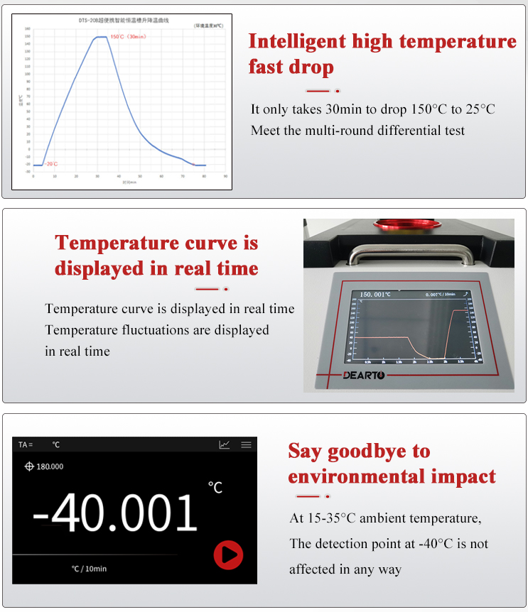 4.Smart touchscreen interface: Smart touchscreen control with 0.001°C resolution. Real-time display of temperature curve and fluctuation.