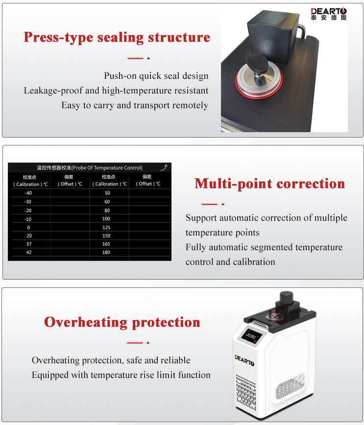 DTS-BG Portable Smart Refrigerated Calibration Bath is a kind of high precision automatic temperature calibration device, which has the characteristics of stable performance, uniform temperature field, accurate temperature control, etc. Fully enclosed refrigeration system, intelligent PID adjustment to achieve automatic temperature control.